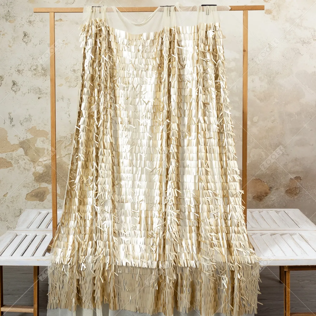 Matte Gold Fringe Piano Rectangle Sequin Dress Fabric
